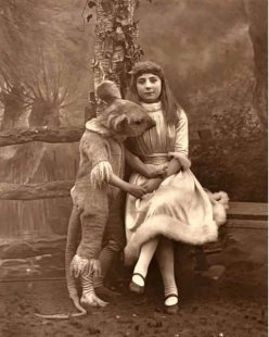 Phoebe Carlo, handpicked by Lewis Carroll himself to play Alice in Wonderland and Dorothy D'Alcourt dressed as the Dormouse.