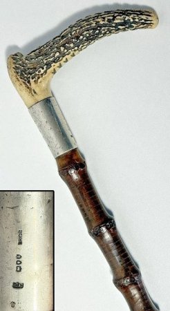 1893 Thomas Brigg & Sons Bespoke Stag Handle Bamboo Dress Cane / Walking Stick - Custom silversmith work by Charles Cooke (London) - Museum Grade